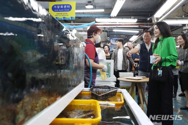 김 여사는 지난 7월 3일엔 강원도 강릉 중앙·성남시장을 방문해 해산물을 시식하고 구매한 바 있다.