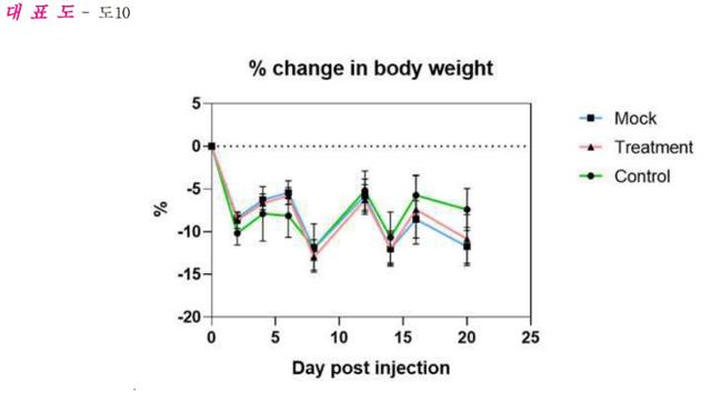 실험쥐에게 SK바이오사이언스의 비만 백신을 투여한 뒤 20일 동안 측정한 몸무게 변화를 나타낸 그래프. 이 회사의 특허 명세서에는 몸무게와 지방 조직이 감소했다고 설명돼 있다.