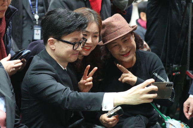 한동훈 국민의힘 비상대책위원장에게 시민들이 셀카 요청을 하는 모습이 온라인에서 화제가 됐다.