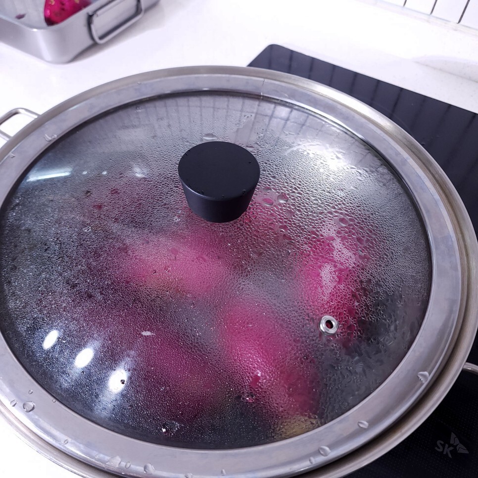 다시 센불에서 뚜껑닫고 고구마 찌는시간 10분 갖을거에요.