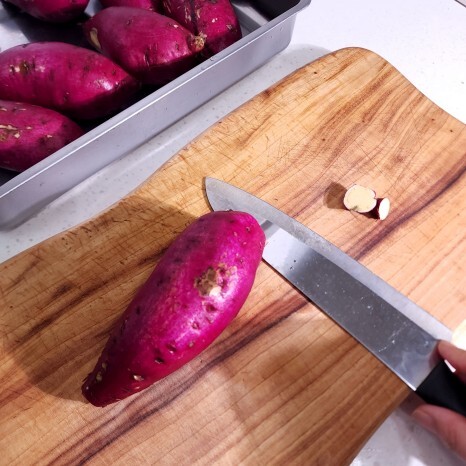 그리고 고구마 찔때 양끝을 잘라줬는데요고구마 양끝을 잘라주는 이유는 수분이 빠져나가 당도가 더 올라간답니다.