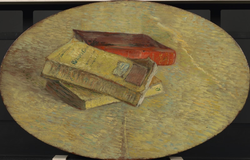 반 고흐는 책을 읽는 행위 자체를 놀라운 사회적 진보로 보고, 이것을 부활시키겠다는 의지를 가지고 있었던 사람인 것 같습니다. 1887년 그린 책 더미 그림은 평범한 정물화처럼 보이지만 그가 책에 대해 가지고 있는 열정이 느껴지는 작품입니다. 책 없이는 살 수 없는 한 인간의 깊은 열정을 담고 있는 그림이라고 볼 수 있습니다.