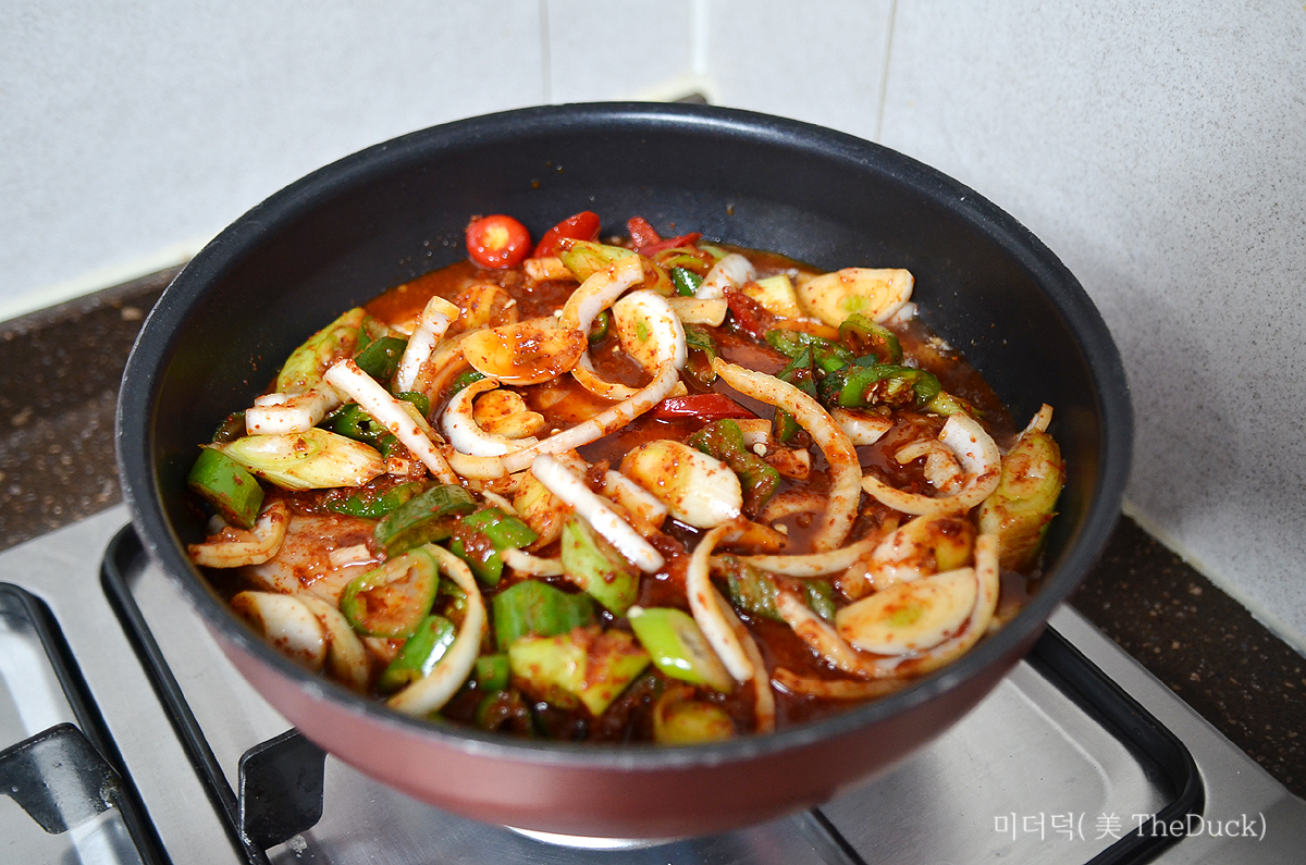 3. 이제 모든 양념과 물을 넣어주시고요 냄비를 덮고 화끈하게 끓여주세요