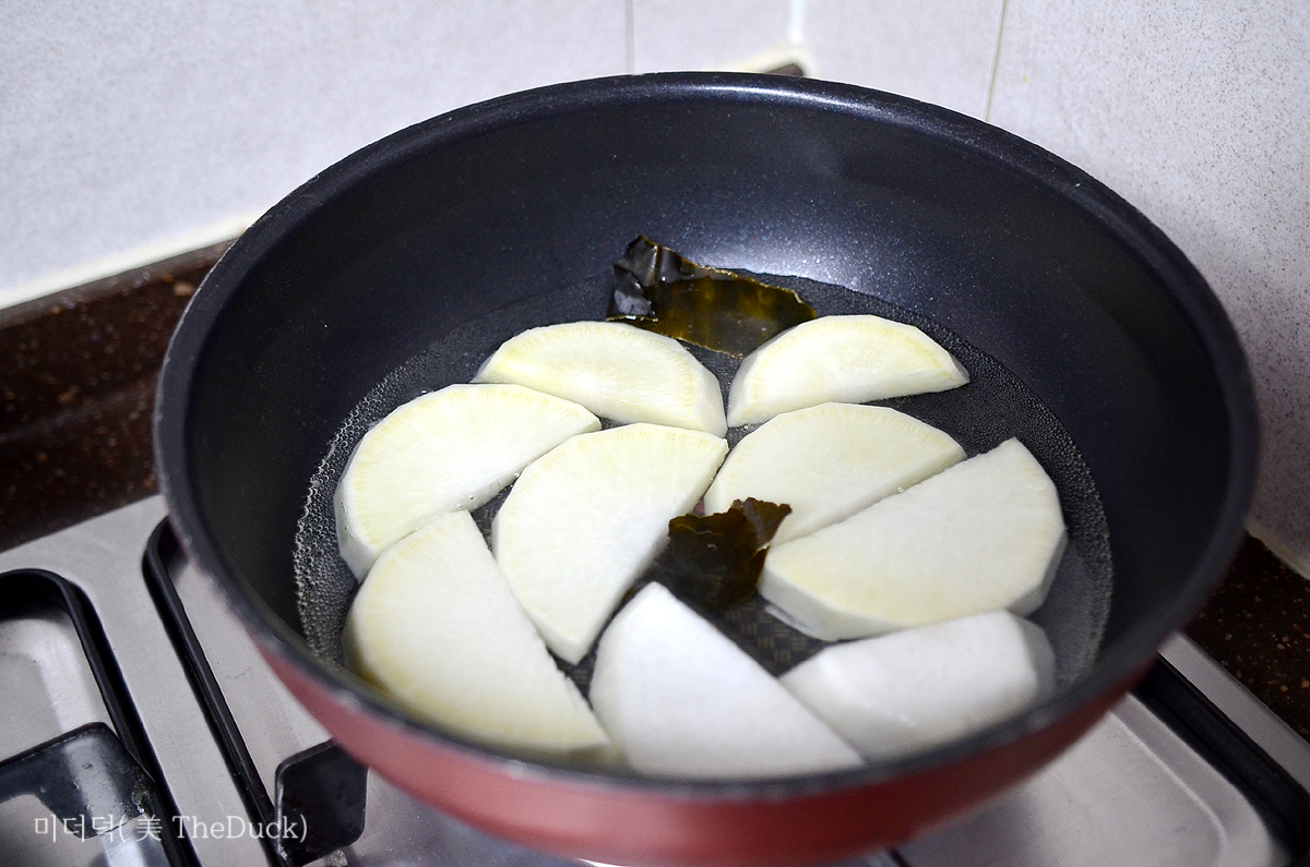 무만 넣고 국물을 10분간 끓여 주신 뒤