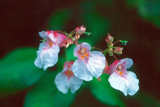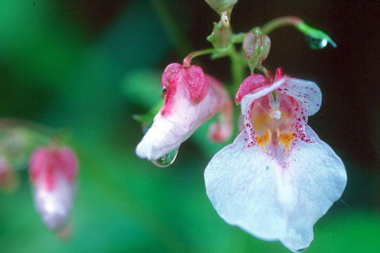 한 물봉선은 꽃 이파리가 매우 연약하여 빗방울에 쉽게 찢기고 상한다.