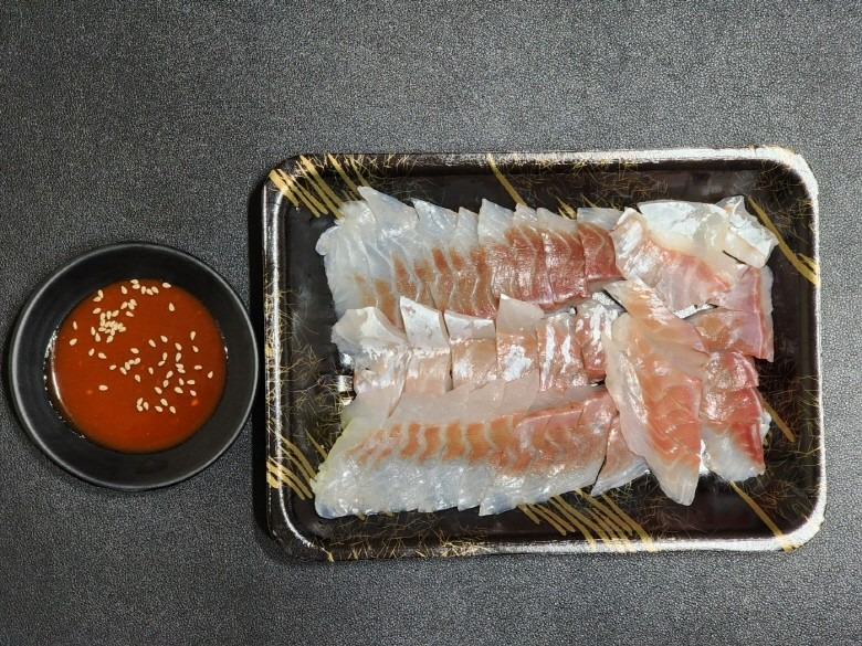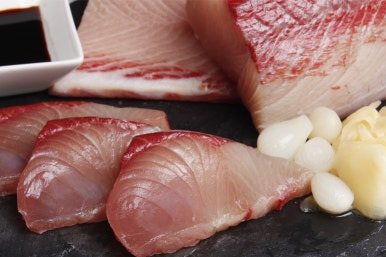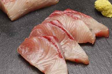 방어회는 아가미살과 기름기 많은 뱃살이 특히 고소하다.