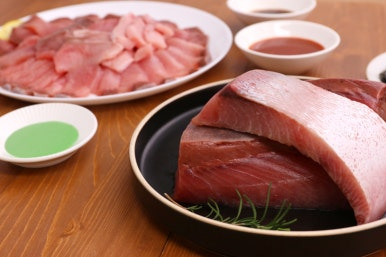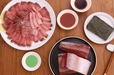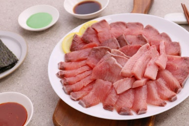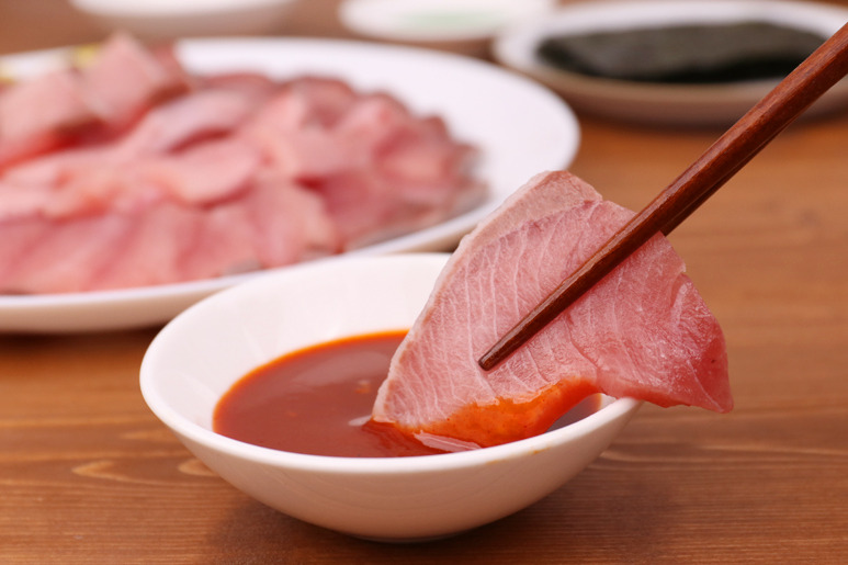 특유의 식감과 맛을 잘 느낄 수 있게 큼직하게 썰어서 가득 집어먹는 걸 추천드리는데요붉은살 어육은 지방질이 많고 기름기가 풍부하기 때문에 약 1 ~ 1.5cm 정도로 두껍게 썰면 쫄깃한 찰짐과 씹히는 식감이 입안에 쫙쫙 달라붙어소주 한잔하기에도 참 좋은 횟감입니다 보통 와사비와 간장을 섞은 후 살짝 찍어드시거나 새콤달콤한 초장에 드시는 게 보편적인 방법인데 개인적으로 군함에 사용되는 빳빳한스시김을 한 입 크기로 자른 후 위에 시원한 묵은지와 함께 싸서 먹는 걸 추천드립니다 식사용으로 드시고 싶은 분들은 갓 지어 고슬고슬한 쌀밥에 단촛물을 뿌려 비벼준 후 한 번 식혀서 동글동글하게 말아 초밥으로 드시면 밥에 벤 양념 맛과 회의 감칠맛이 어우러져 간단하지만 맛은 훌륭한 하이퀄리티 홈마카세로 즐기실 수 있습니다