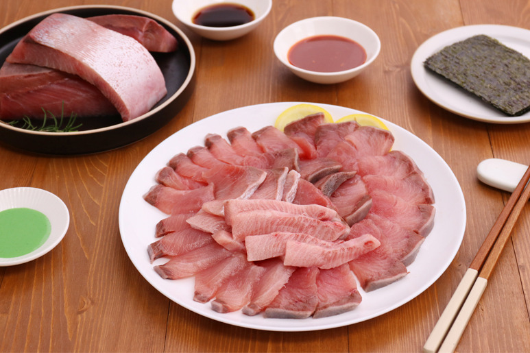몸집이 클수록 생선이 맛있다는 말이 있듯 이 녀석 또한 큰 성체일수록 골라 먹을 수 있는 특수부위 범위가 넓어지고 그 식감과 맛도 한 층 풍부해지는데요 우리가 흔히 접하는 부위로 목살 등살 뱃살 사잇살 꼬릿살 크게 5가지로 나눌 수 있으며 각각 다른 매력을 가지고 있습니다 부위별 맛을 간단하게 설명하자면1. 목살(가마살)은 운동량이 많아 육질이 튼튼하고 지방층도 살아있어 씹었을 때 식감이 좋습니다2. 등살은 살이 연하고 윤기 있는 게 특징으로 지방이 적어 삼삼한 맛과 함께 입안에서 살살 녹는단 표현을 하고 싶네요 몸통 가장 아래쪽에 위치한3. 뱃살은 반대로 지방이 많아 고소한 맛이 일품으로 두툼하게 먹었을 때 기름진 풍미가 특징으로 진한 여운을 남기고 갑니다 등살과 뱃살 사이에 위치한4. 사잇살은 지방 양과 근육이 적절하게 분포되어 있어 적당히 탄탄하고 부드러우며맛이 과하지 않고 부담스럽지 않습니다 마지막으로5. 꼬리살은 헤엄치기 위해 계속 움직이는 부분이라 다른 곳보다 더욱 찰지고 쫄깃하며 탄력 있는 맛이 특징으로 씹는 재미가 있습니다 접할 기회가 있다면 전체적으로 감상하면서 드신다면 맛을 더 잘 느끼실 수 있을 거예요