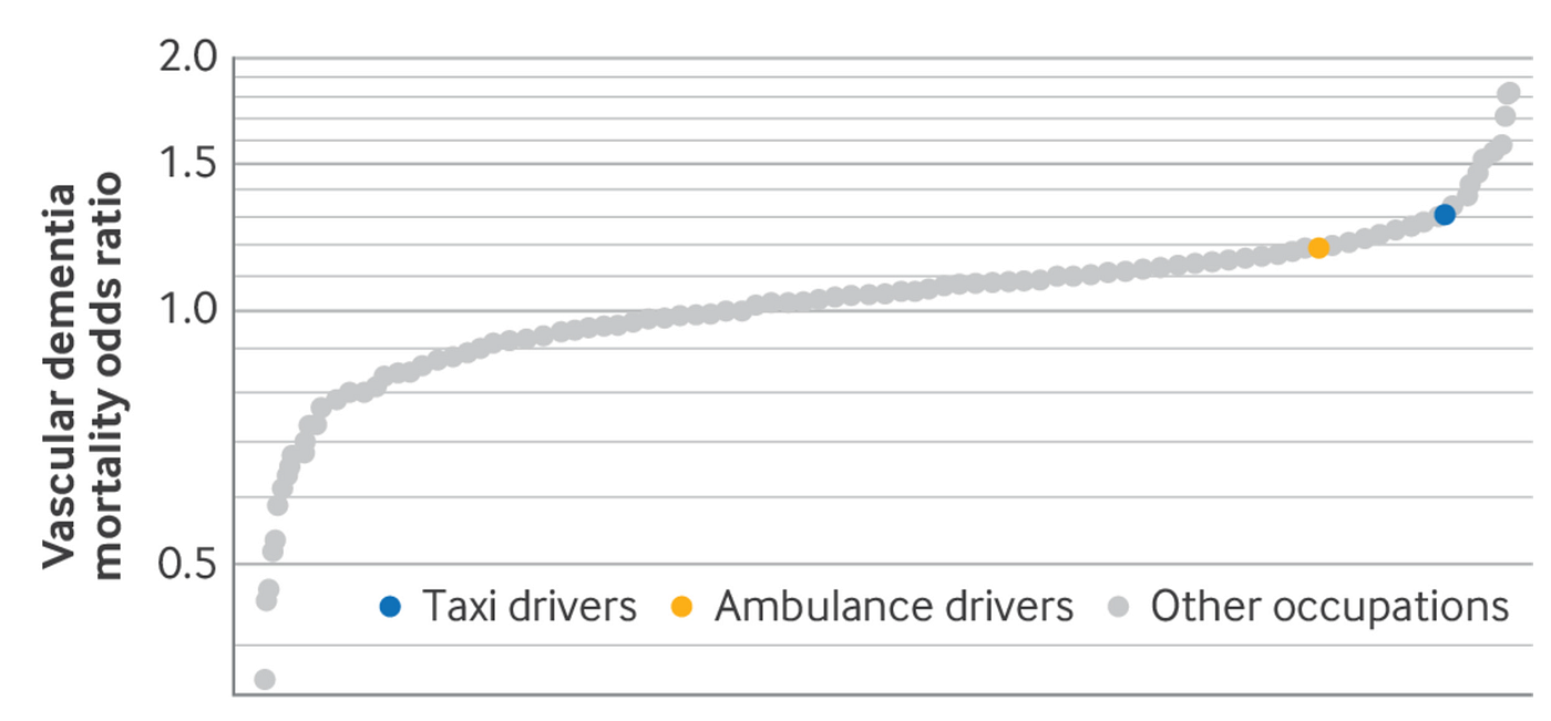 혈관성 치매, 두 번째로 흔한 치매의 사망 측면에서 택시 운전사와 구급차 운전사는 실제로 높은 편입니다.