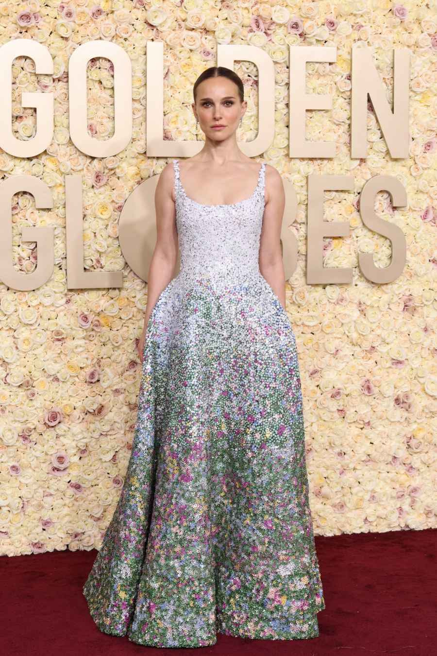 포트먼은 2024년에 파스텔과 플로럴 디자인의 디올 오트 쿠튀르 드레스를 입고 천사 같은 모습을 선보였습니다.