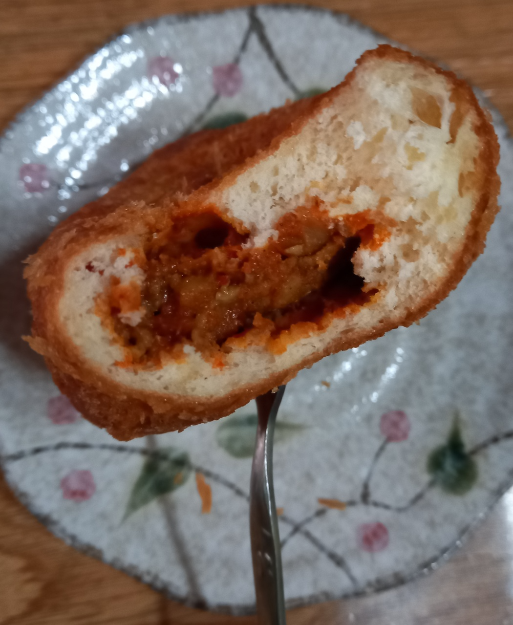 맛은 카레고로케인거 같은데 살짝 매콤한 맛이 있고 고기가 엄청 많이 들어있습니다.