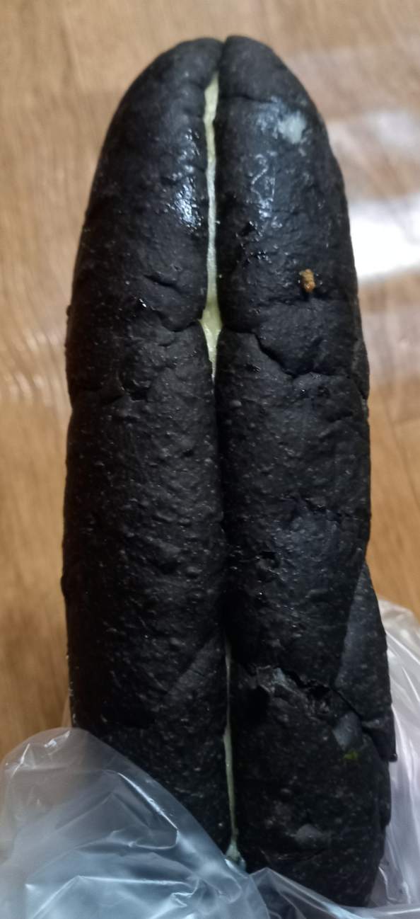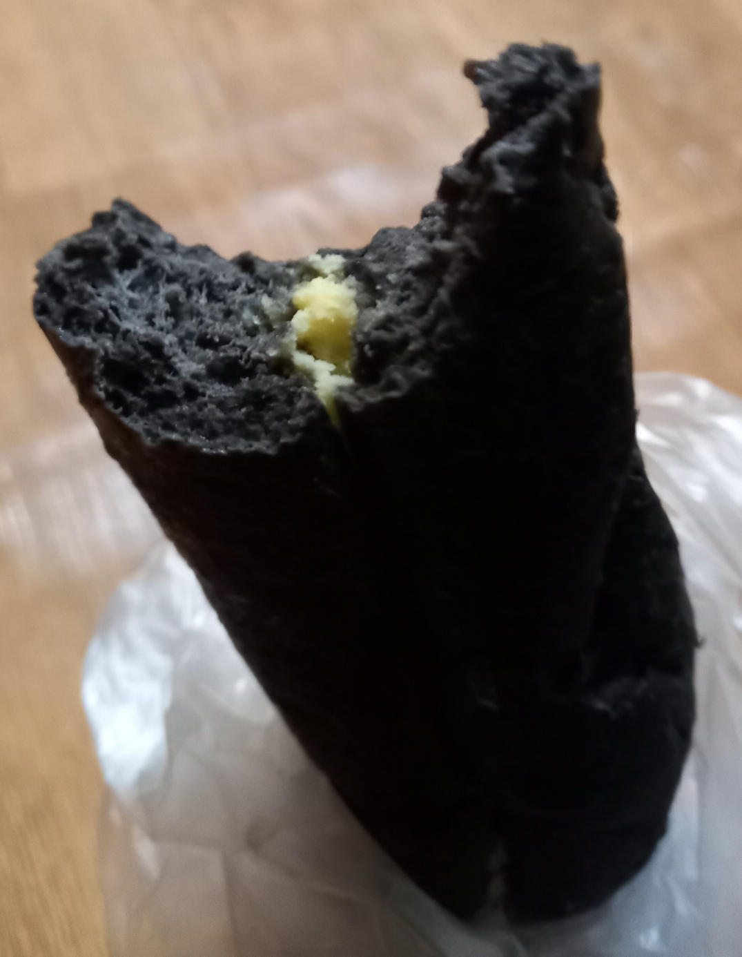 식감이 쫄깃한 빵이고 오징어먹물의 맛은 진하지않았지만