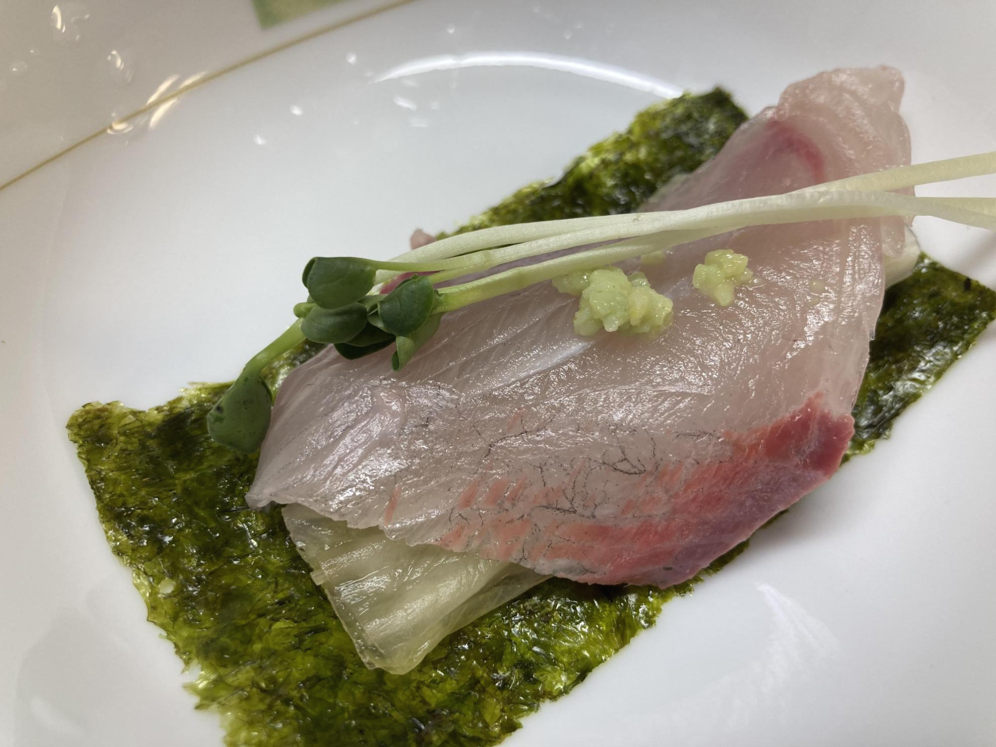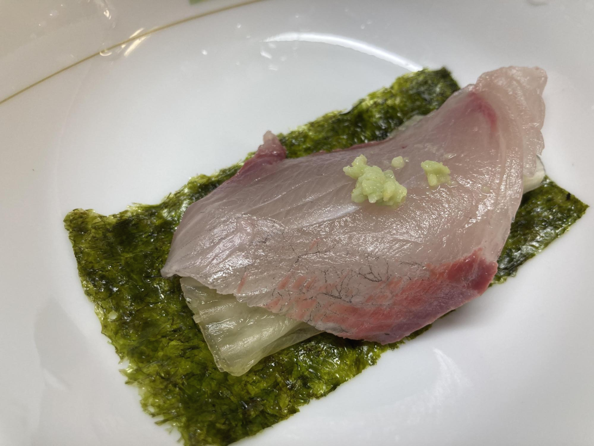 연어와 마찬가지로 생선의 기름기가 고추냉이의 매운맛을 녹여주어 담백하고 깔끔한 맛을 느낄 수 있습니다.