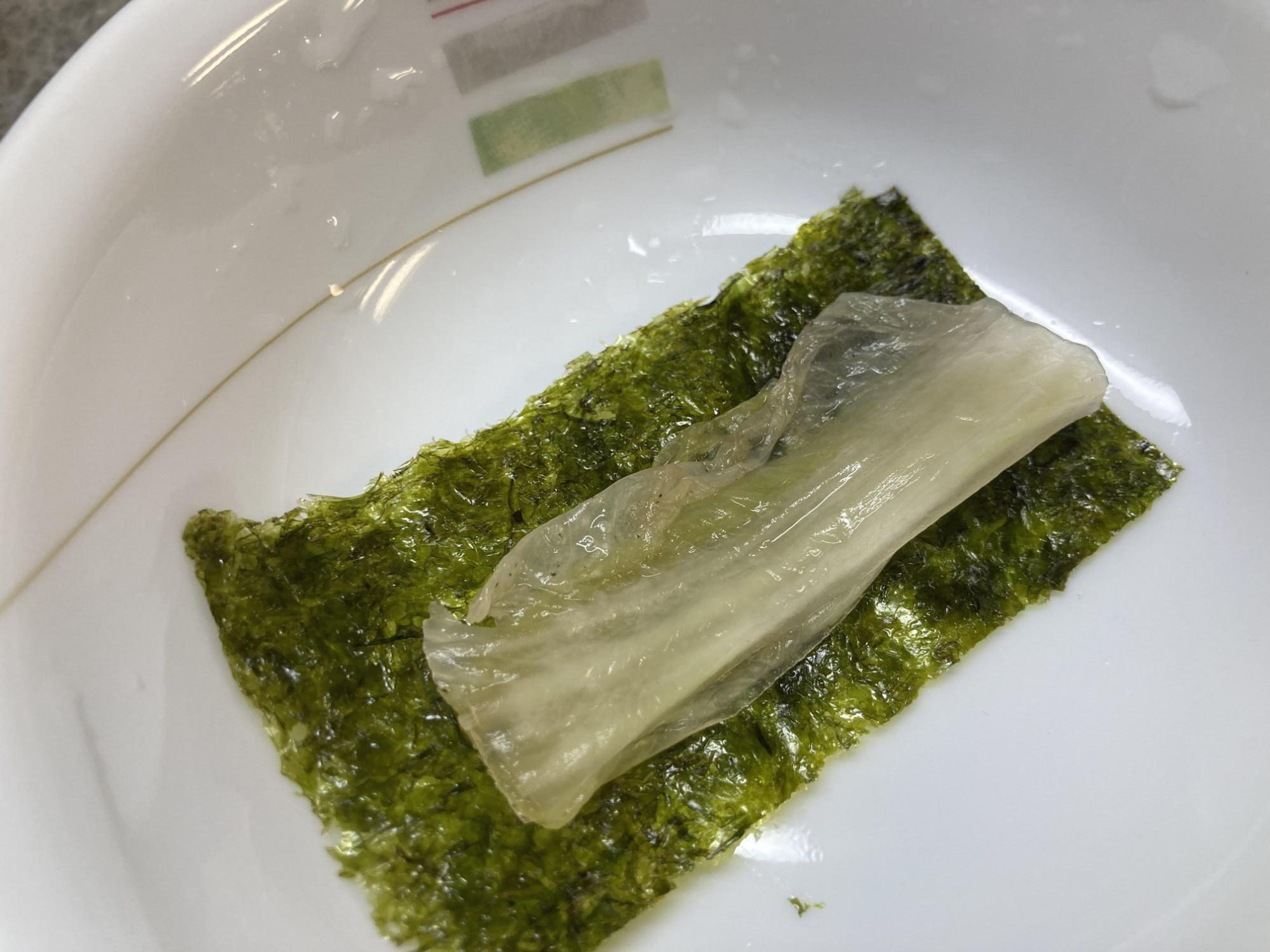 대부분의 가게에서는 생선의 물기를 닦아내는 쫀쫀한 질감의 종이, 회 숙성지가 준비되어 있습니다.