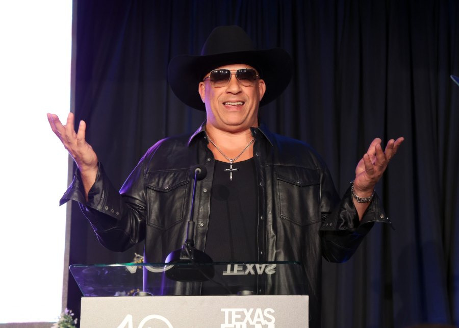 빈 디젤은 2025년 3월 6일 텍사스주 오스틴에서 열린 제25회 텍사스 영화상 시상식에서 무대에 올라 연설하면서 전신 검은색 룩을 선보였습니다.