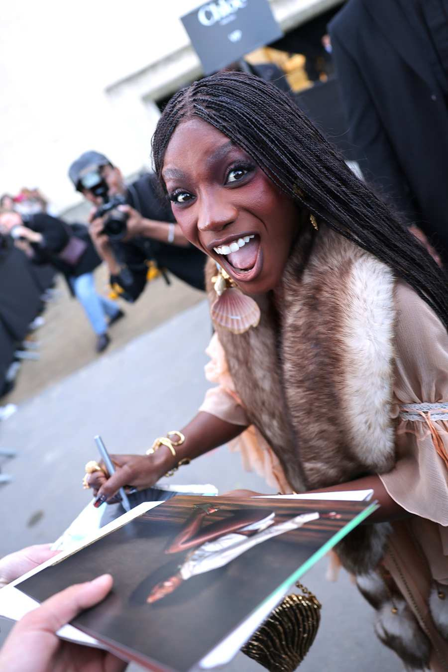 슈퍼스타 가수 채플 로안은 2025년 3월 8일 파리 패션 위크 기간 중 루도빅 드 생 세르몽 쇼에 참석해 눈길을 끌었습니다.