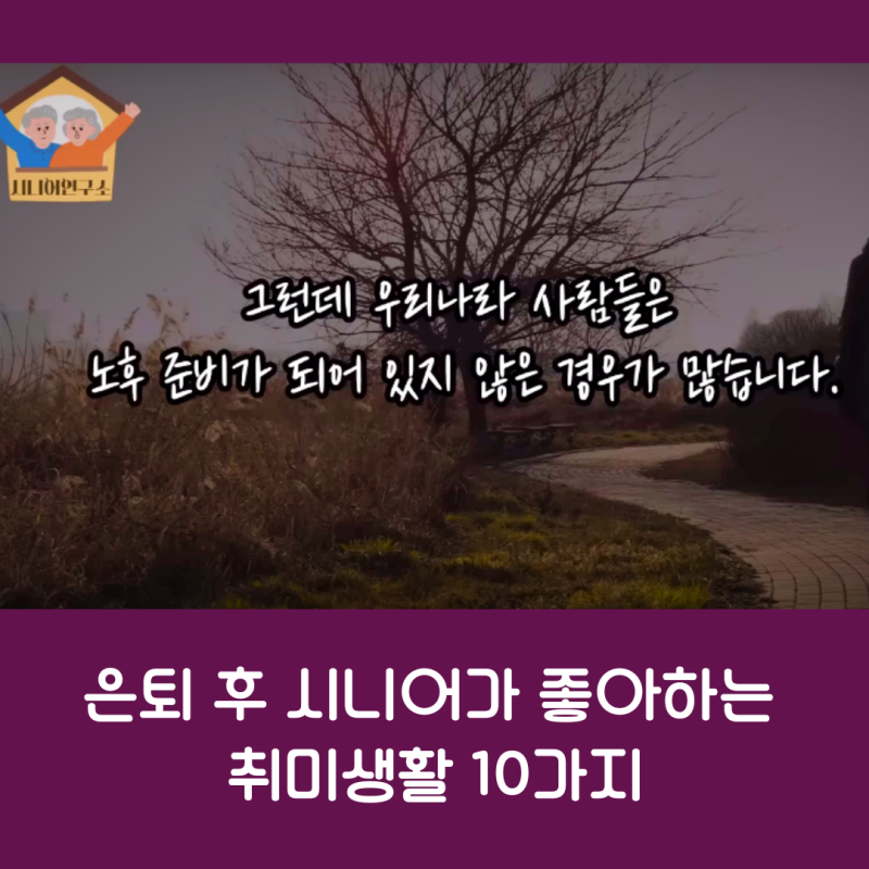 그래서오늘은노후에돈을많이들이지않으면서도행복한노후를보낼수있는시니어들을위한취미를몇가지소개해드리겠습니다.