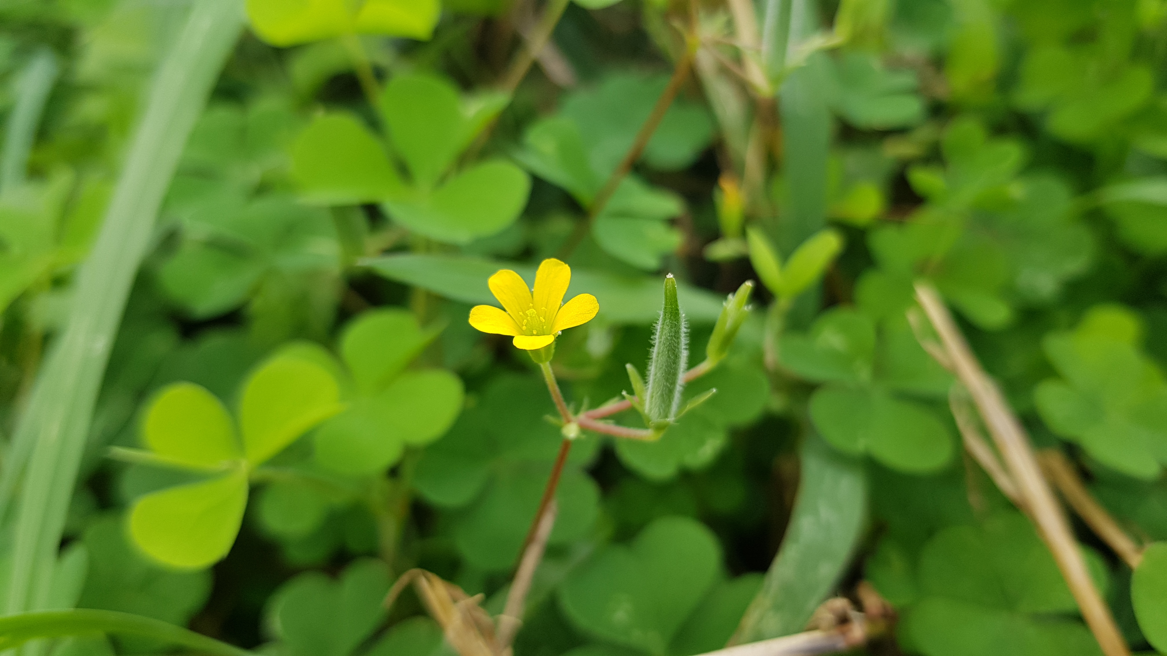 언뜻 보면 토끼풀을 닮은듯한 괭이밥. 어렸을 적에 잎 몇 개 뜯어서 입안에