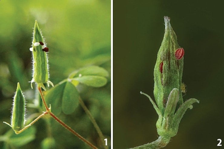 괭이밥이 지닌 또 하나의 특징은 해가 지면 편안한 잠을 즐기려는 듯 잎을 오므린다는 것. 이처럼 밤이 되어 잎을 오므리는 괭이밥이나 차풀 같은 식물은 불면증에 좋다고 하니 얼마나 신비로운가. 식물들은 잎의 생김새나 변화를 신호로 사람에게 자기의 쓰임새를 알려주는 것일까. ‘불면으로 고생하는 사람은 나를 뜯어먹으세요!’라고 일러주듯! 지난 늦은 봄 나는 며칠 동안 불면으로 잠을 설친 뒤 괭이밥을 뜯어먹고 깊은 잠을 이루는 신비한 체험을 직접 한 적이 있다.