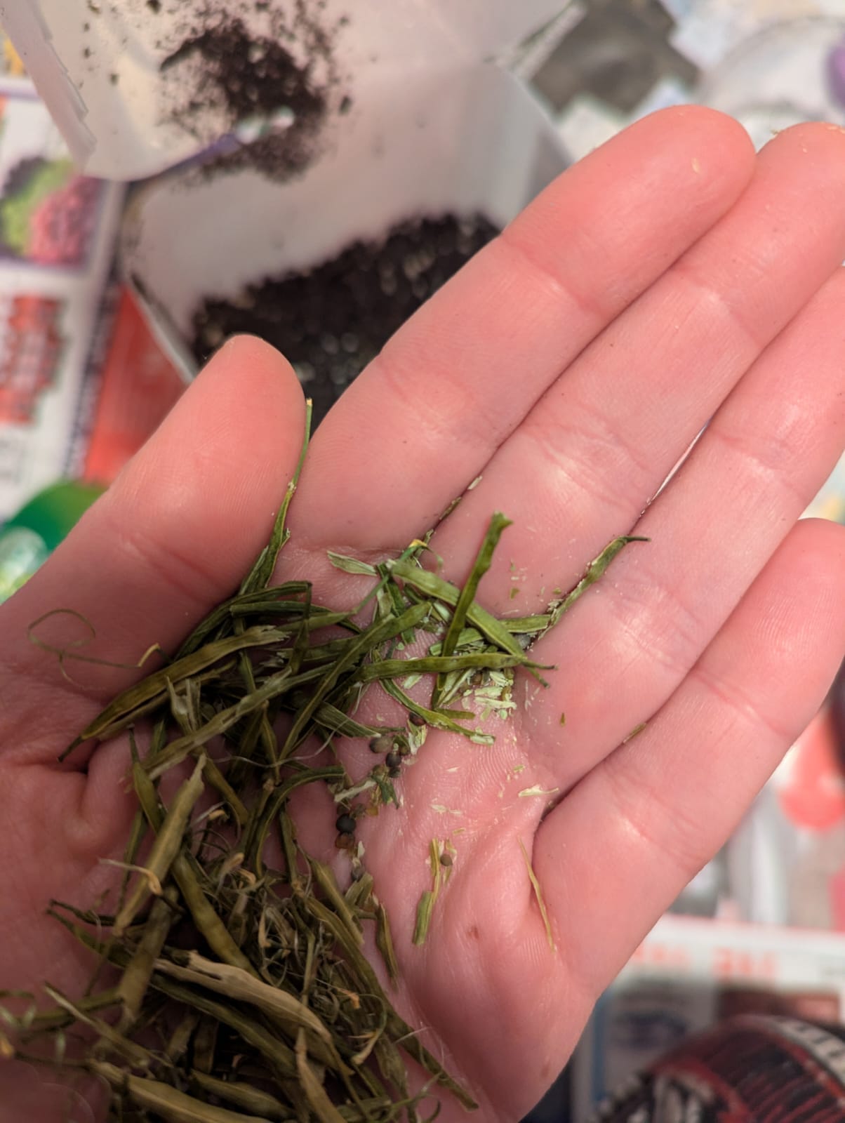 씨앗을 뿌리고(1년 이상 된 씨앗이면 후하게 뿌리거나 패키지에 적힌 지침에 따라) 흙을 얇게 덮습니다.