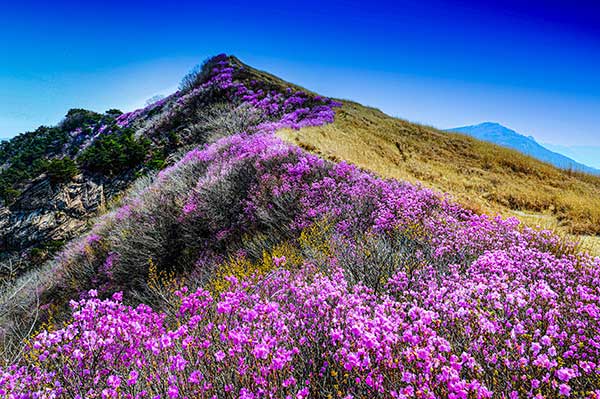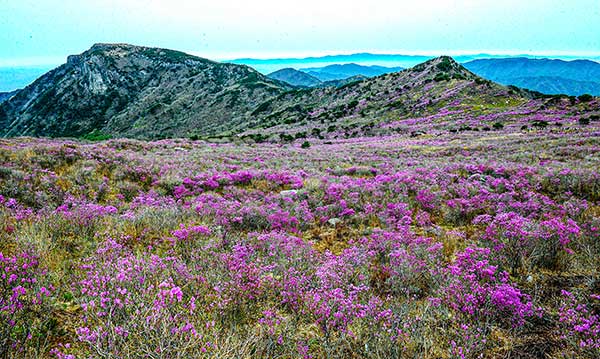 4월이면 정상 주변 해발 1,000m 고지에 넓은 진달래 화원이 펼쳐지는데 무려