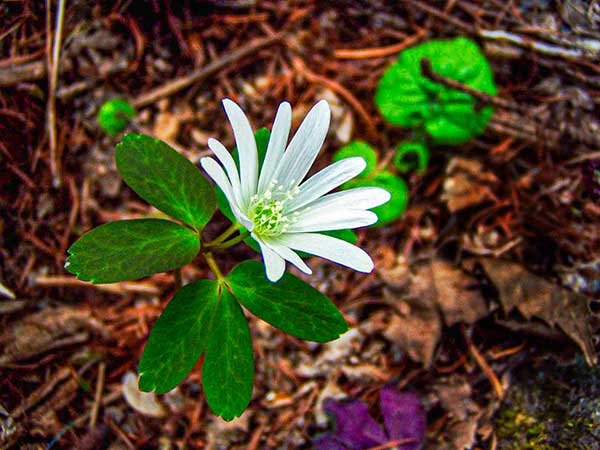 꽃은 백색으로 탐스럽게 피어 봄철에 눈을 즐겁게 하는 야생화다.