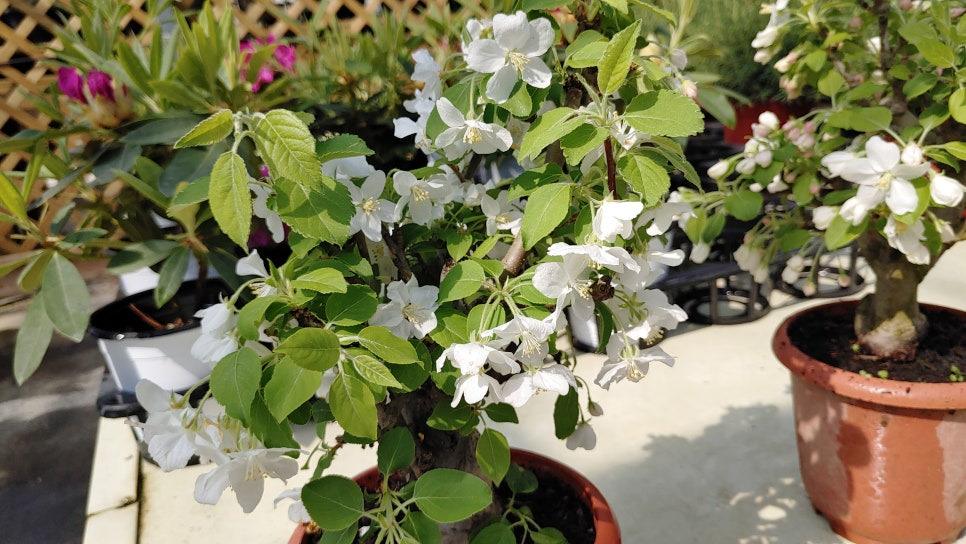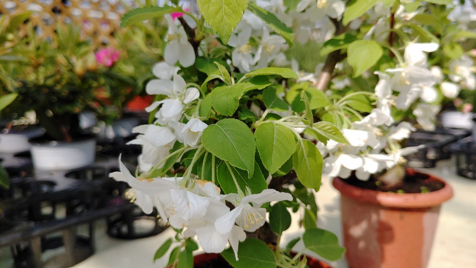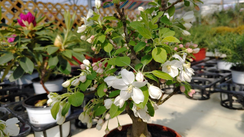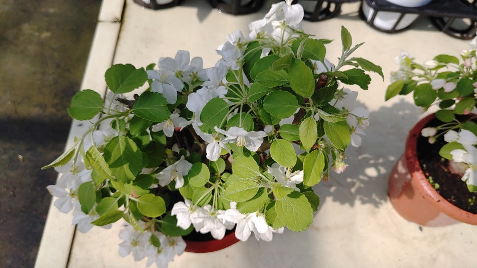 집안 화단에서 키워도 되고 화분에서도 키울 수 있으니까요. 열매를 수확할 목적으로 키우기도 하지만 꽃이 이뻐서 화초로도 손색이 없고요. 이쁜 꽃을 보고 열매도 수확할 수 있는 애기사과나무 키우기를