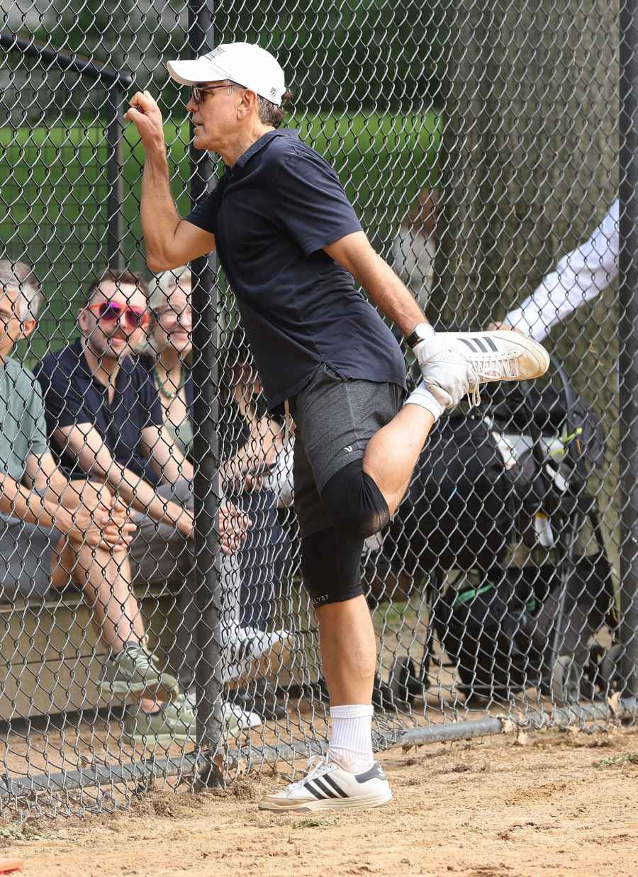 조지 클루니는 2025년 5월 8일 브로드웨이 리그 소프트볼 경기를 위해 스트레칭을 하는 동안 그 어느 때보다 더 멋진 모습을 보였습니다.