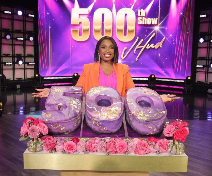 제니퍼 허드슨은 2025년 5월 7일 캘리포니아주 버뱅크에서 열린 워너 브라더스 언스크립티드 TV의 '제니퍼 허드슨 쇼' 촬영장에서 자신의 인기 토크쇼 500회 방영을 기념했습니다