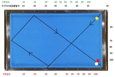 당구대 위에서 3쿠션을 만들기 위해선 여러 가지의 길이 있다.