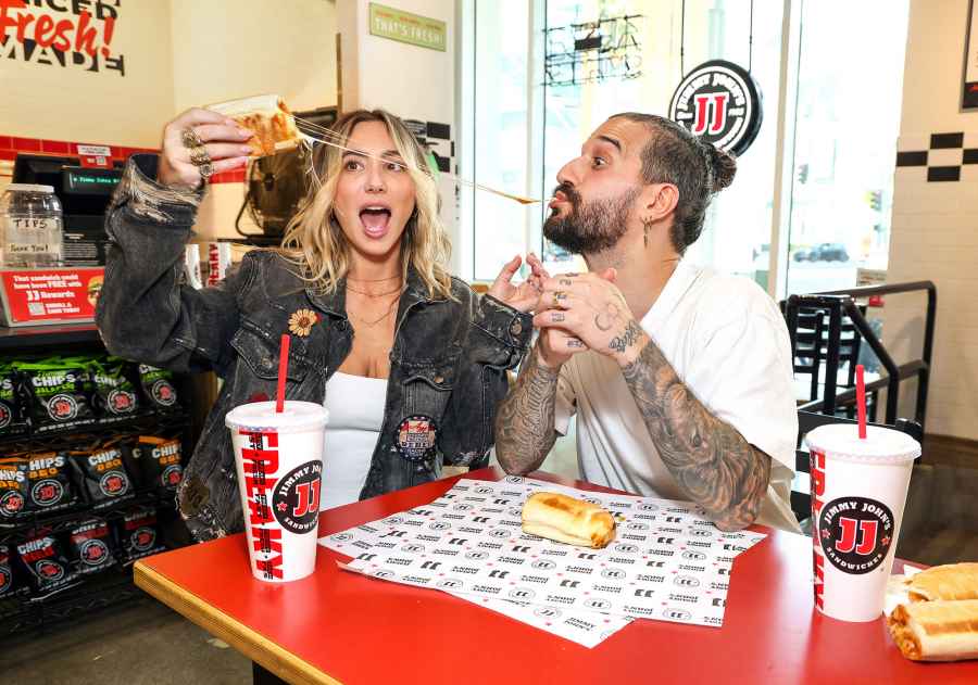 댄싱 위드 더 스타즈 의 마크 발라스 와 그의 아내 BC 진은 2025년 10월 7일 리얼리티 경연 프로그램의 최신 에피소드를 앞두고 지미 존스 토스트 피자 샌드위치로 완벽하게 치즈 같은 순간을 공유했습니다.