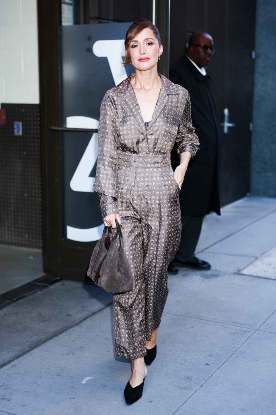 로즈 번은 2025년 10월 9일 뉴욕시에서 회색 점프수트를 입고 The View 에서 나오는 모습이 포착되었습니다
