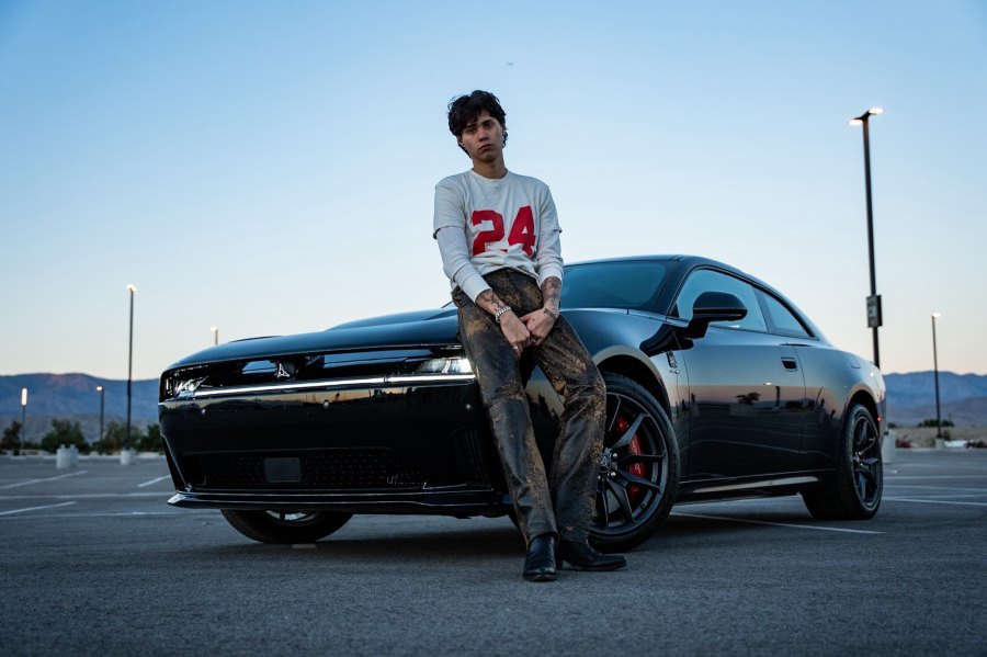 랜던 바커는 2025년 10월 4일 캘리포니아 팜데저트에서 열린블링크-182의 미셔너리 임파서블 투어에 Dodge Charger Daytona Scat Pack을 타고 스타일리시하게 도착했습니다.
