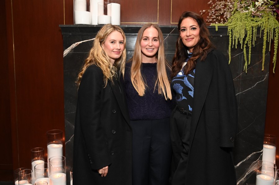 헤더 그레이엄 , 신디 에커트 , 아콰피나는 2025년 11월 19일 뉴욕시에서 스프라우트 제약 창립자 겸 CEO인 아이슬링 친이 의 새로운 다큐멘터리 ' 핑크 필' 을 축하했습니다