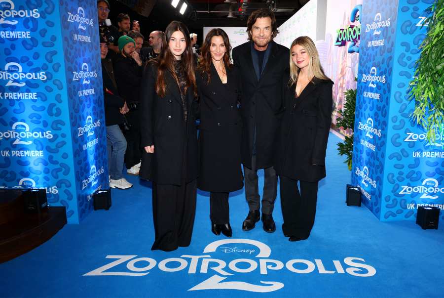 제이슨 베이트먼은 아내 아만다 앙카 와 두 딸인 메이플, 프란체스카2025년 11월 23일 런던에서 열리는 주토피아 2 의 영국 시사회에 참석했습니다.