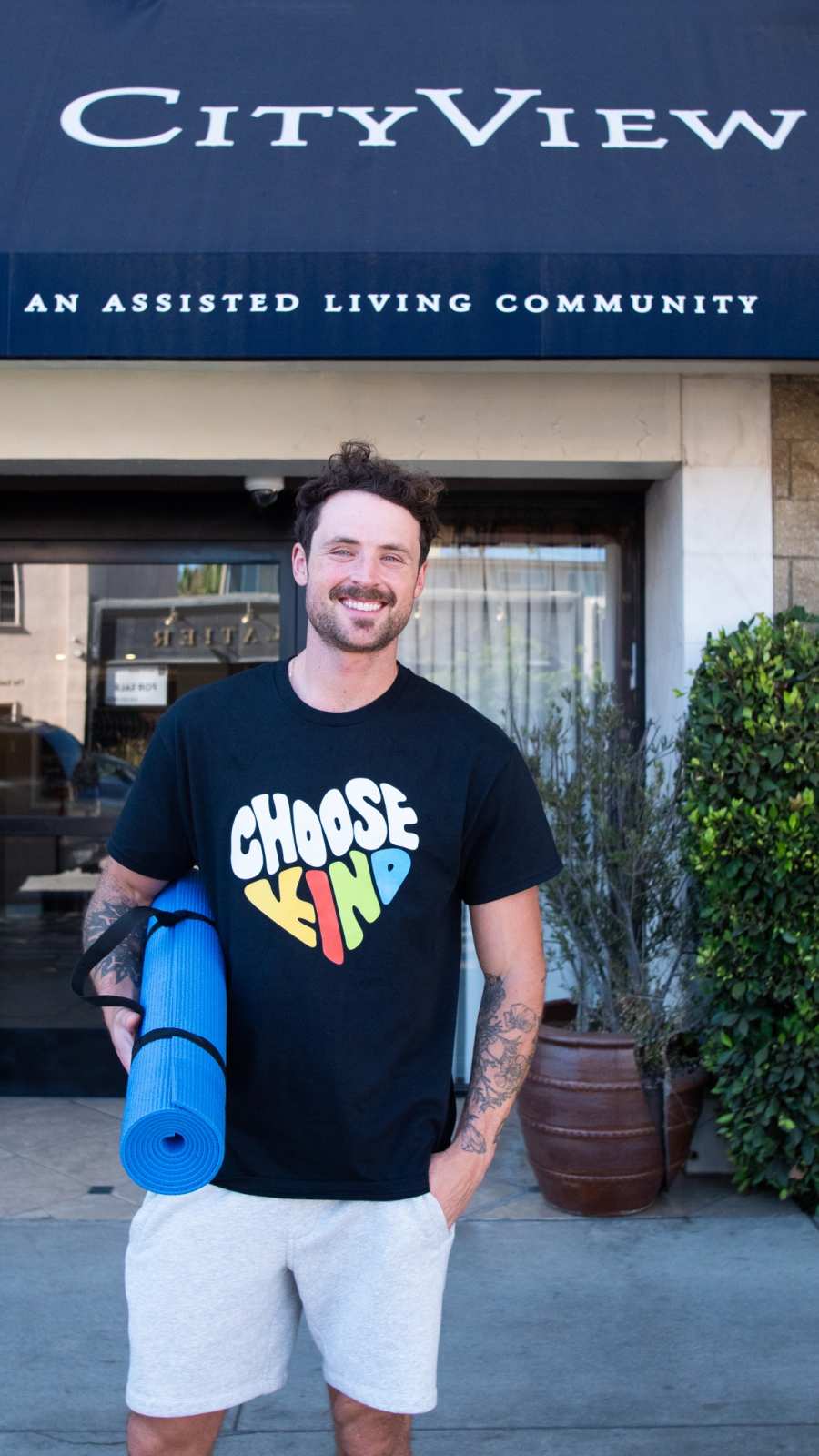 댄싱 위드 더 스타즈 참가자 딜런 에프론은 2025년 11월 13일 세계 친절의 날에 노인 복지 센터 이용자들에게 깜짝 선물을 주어 움직이게 하는 KIND의 Choose Kind 운동에 참여했습니다.