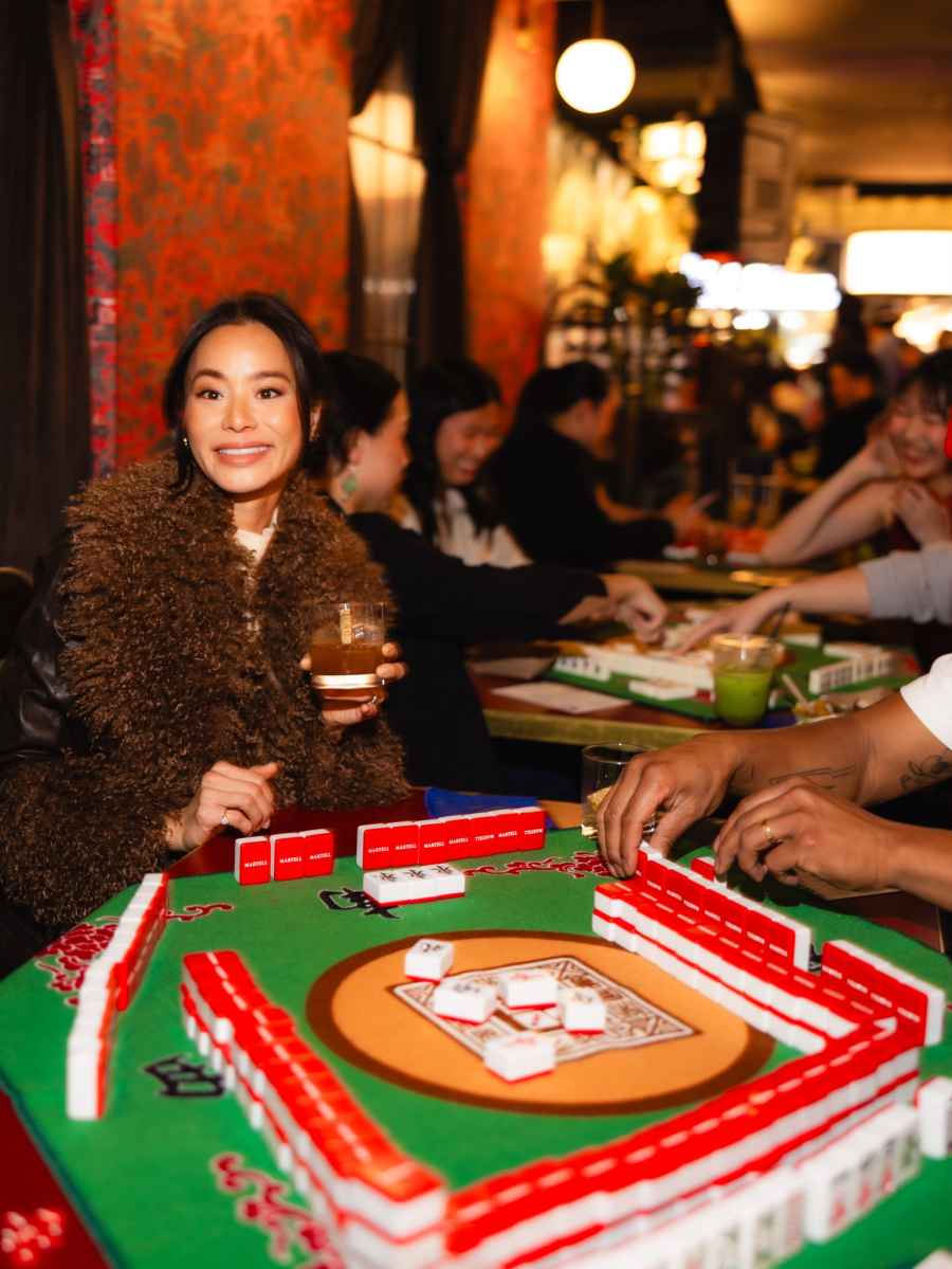 제이미 정은 2025년 11월 15일 뉴욕시 피닉스 팰리스에서 열린 그린 타일 소셜 클럽과 함께한 캣 달링의 게임 나이트에서 마작 게임을 하면서 마르텔 코르동 블루 진저 세서미 올드 패션드를 즐겼습니다.