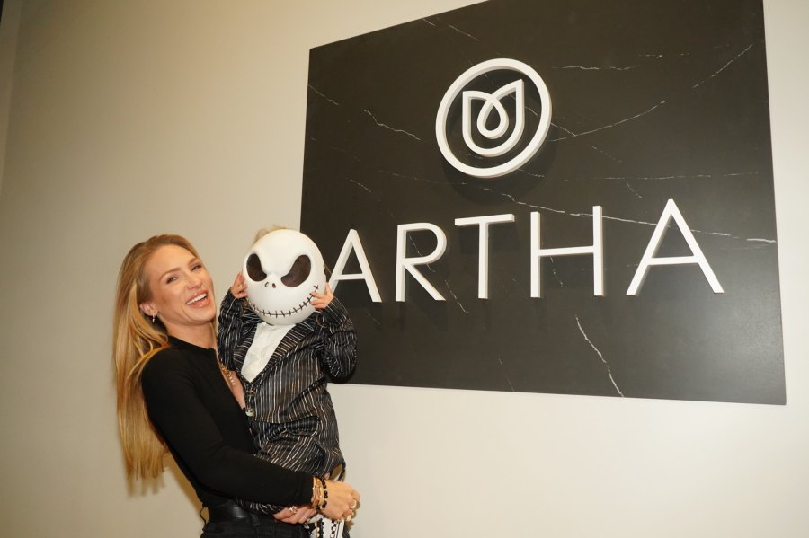 샤르나 버제스는 아들 제인과 함께 크리스마스 악몽 의상을 입고 2025년 11월 19일 로스앤젤레스의 웨스트 에지에 있는 멤버십 웰니스 시설의 새 위치를 축하하는 ARTHA West LA 미리보기 행사와 친구 추수감사절 파티에 참석했습니다.