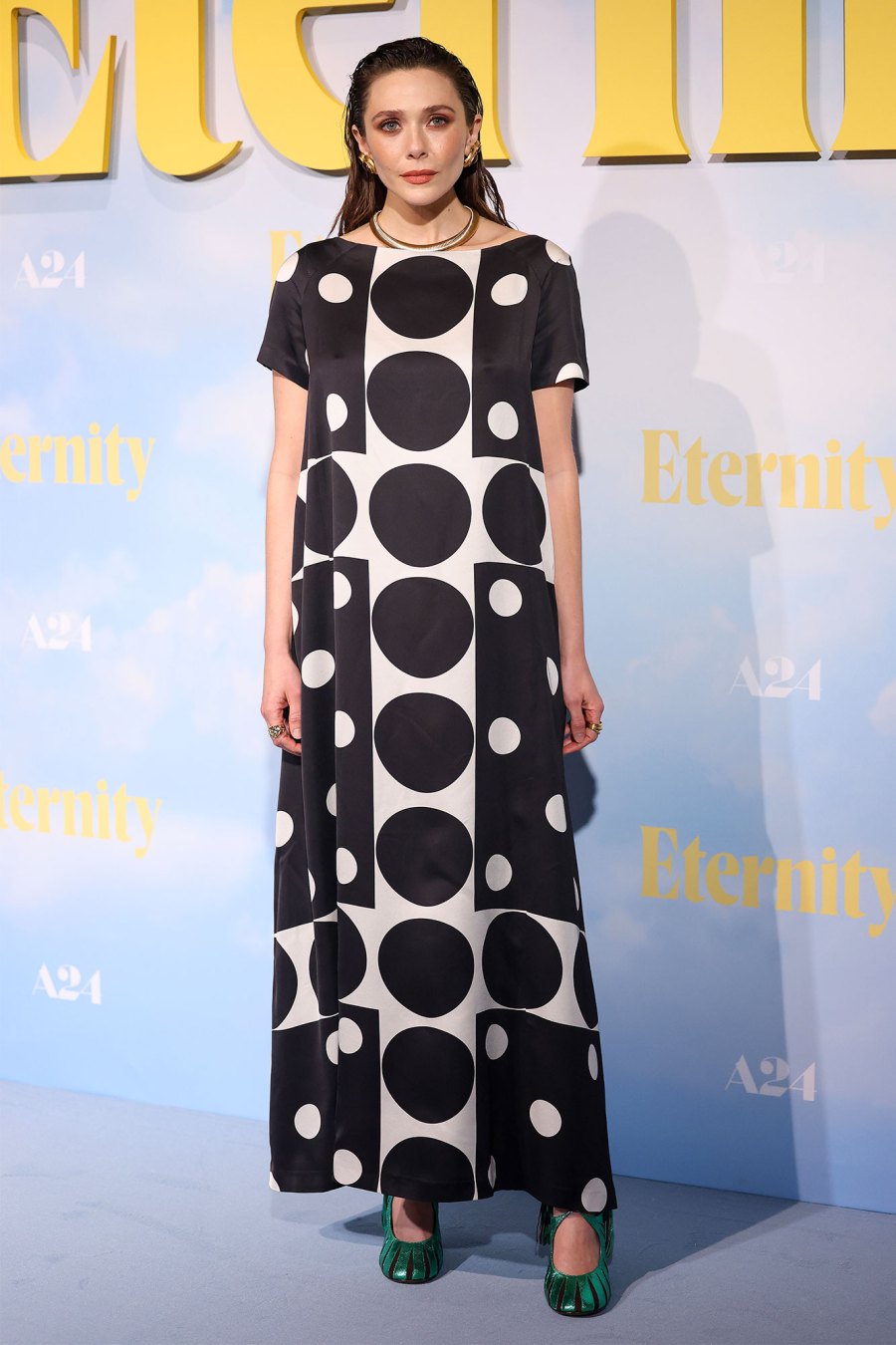 엘리자베스 올슨은 2025년 11월 17일 런던에서 열린 영화 '이터니티 '의 영국 시사회에서 사진을 찍었습니다.