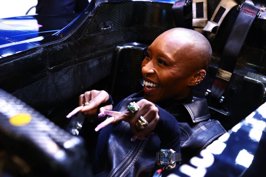신시아 에리보는 2025년 11월 라스베이거스 그랑프리를 앞두고 아틀라시안 윌리엄스 레이싱 차고에서 젠슨 버튼 과 함께 핫랩을 달리며 Wicked: For Good 홍보를 잠시 중단했습니다
