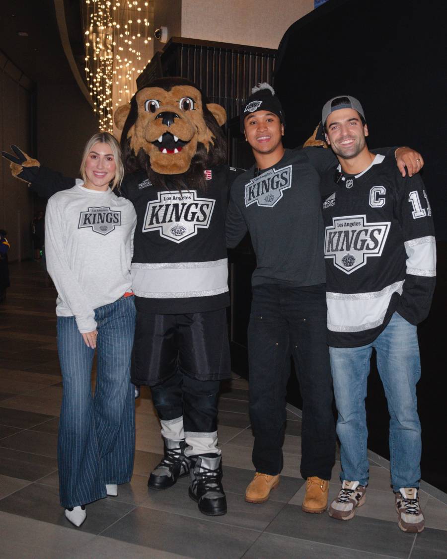 댄싱 위드 더 스타즈의 프로 댄서인 에마 슬레이터 , 브랜든 암스트롱 , 얀 라브닉은 2025년 11월 21일 로스앤젤레스의 Crypto.com 아레나에서 로스앤젤레스 킹스와 보스턴 브루인스의 경기를 관람했습니다.