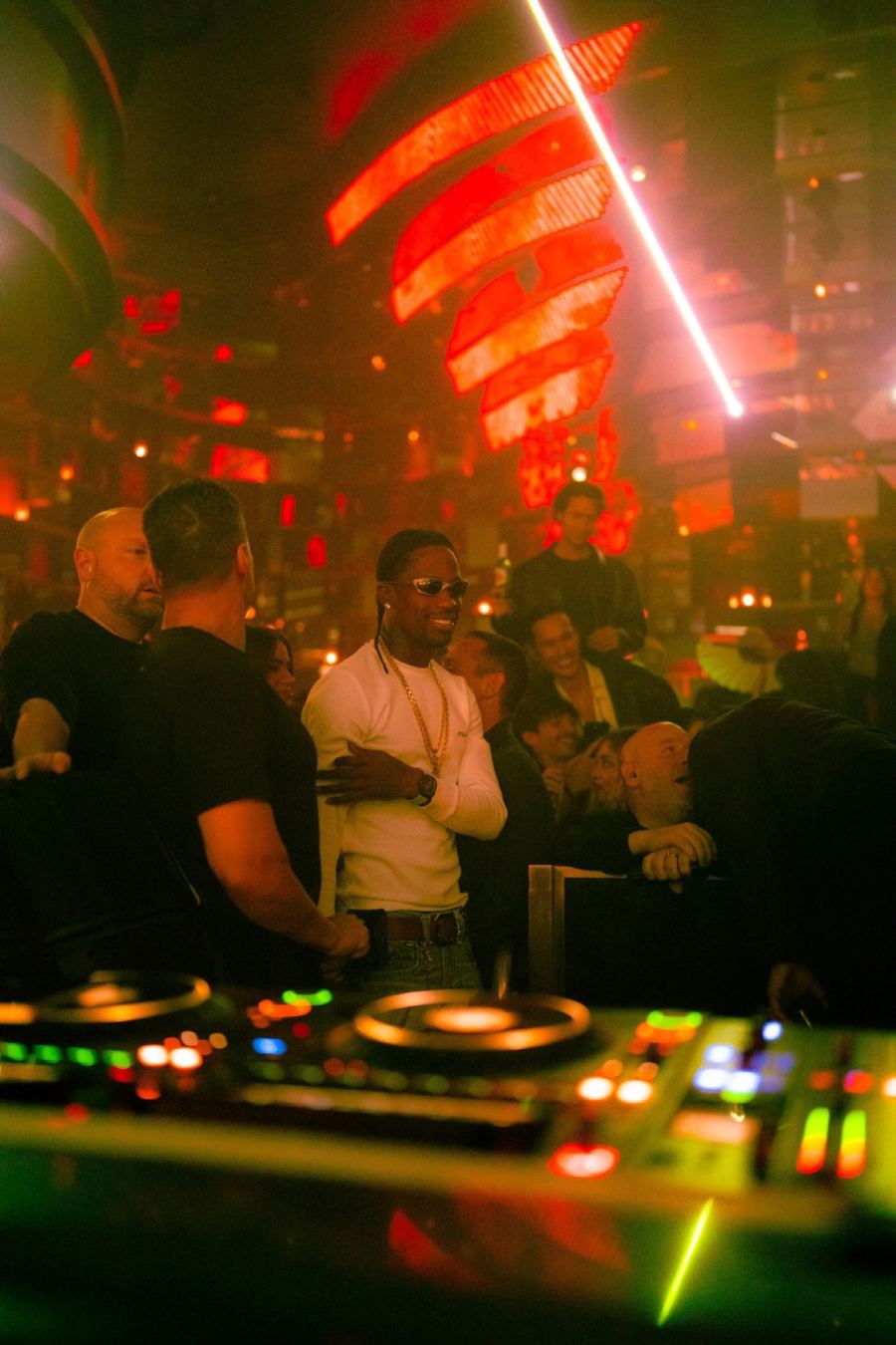 트래비스 스콧은 2025년 11월 21일 F1 주말에 라스베이거스의 OMNIA 나이트클럽에서 마틴 개릭스 와 함께 부스에 뛰어들었습니다