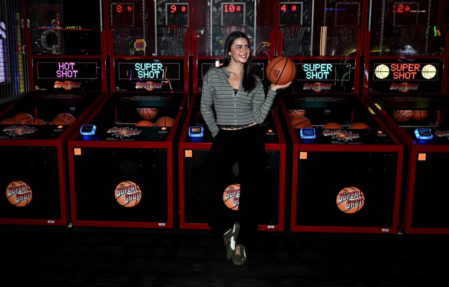 학사 졸업생 레이첼 커크코넬은 2025년 11월 19일 조지아주 알파레타에 있는 데이브 앤 버스터즈 매장에서 새로운 메뉴를 시식한 후 몇 가지 게임을 시도해 보았습니다.