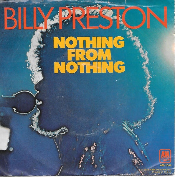 이 글은 1974년 10월 빌보드 1위를 차지한 그의 히트곡 Nothing From Nothing 에 Nothing from Nothing Leaves Nothing 이라는 불후의 명곡이 담겨 있는 빌리 프레스턴의 말을 인용했습니다.