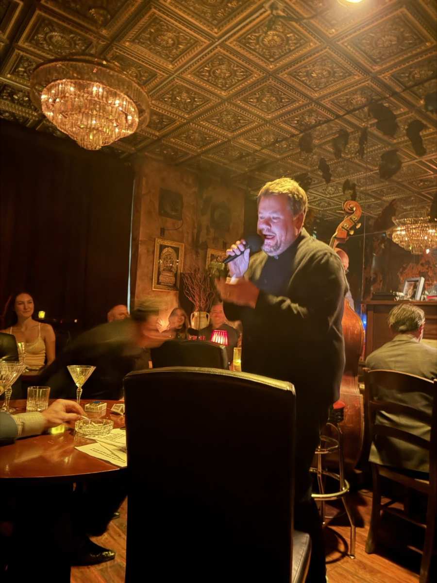 제임스 코든은 2025년 11월 뉴욕시의 에밀리오 발라토에 있는 비밀 바에서 지미 팰런 과 론 마이클스 와 저녁 식사를 한 후 "My Way"를 부르기 위해 무대에 올랐습니다 .