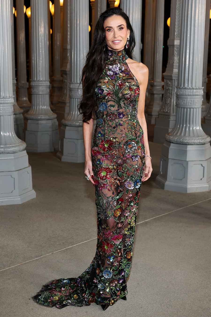 데미 무어는 2025년 11월 1일 로스앤젤레스 카운티 미술관에서 열린 LACMA 아트+필름 갈라에서 구찌 가운을 입고 눈길을 끌었습니다.
