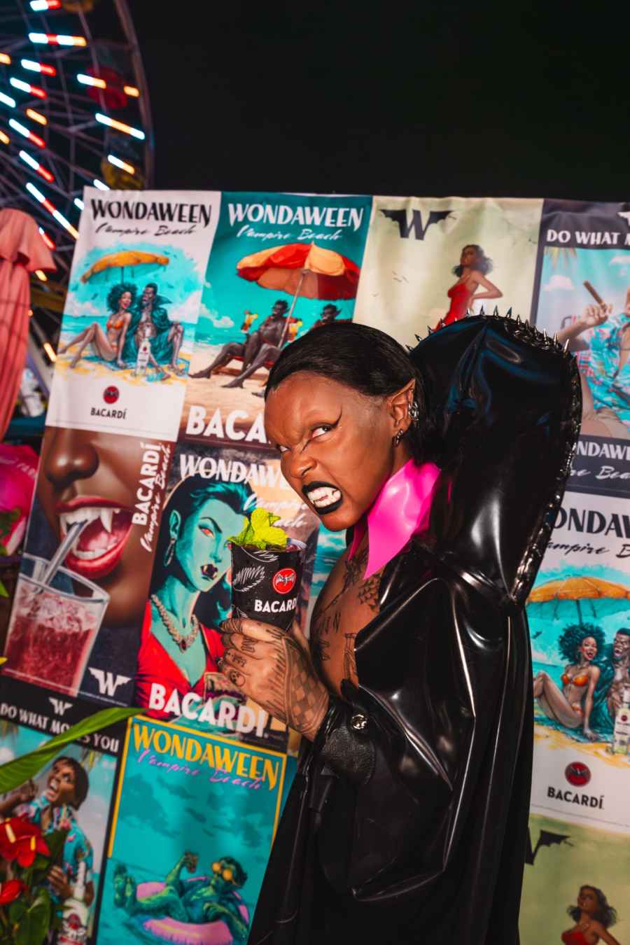 자넬 모네는 2025년 10월 31일 캘리포니아에서 바카르디 럼과 함께 원다윈 페스티벌을 열어 상징적인 산타모니카 부두를 으스스한 뱀파이어 해변으로 탈바꿈시켰습니다.