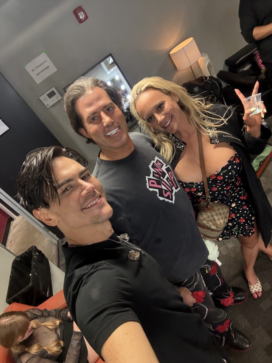 엔터테인먼트 변호사이자 학사 학위 소지자인 에리카 로즈 와 그녀의 남편 찰스 샌더스는 2025년 9월 텍사스 투어 ' 톰 샌도발 앤 더 모스트 엑스트라' 중에 톰 샌도발 과 함께 백스테이지에서 즐거운 시간을 보냈습니다 .