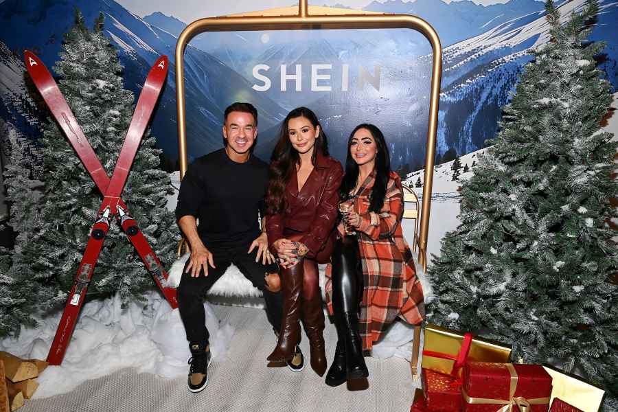 저지 쇼어 의 마이크 "더 시추에이션" 소렌티노 , 제니 "JWoww" 팔리 , 앤젤리나 피바닉이 2025년 11월 6일 뉴욕시에서 열린 SHEIN의 하울리데이 마켓에 참석했습니다.