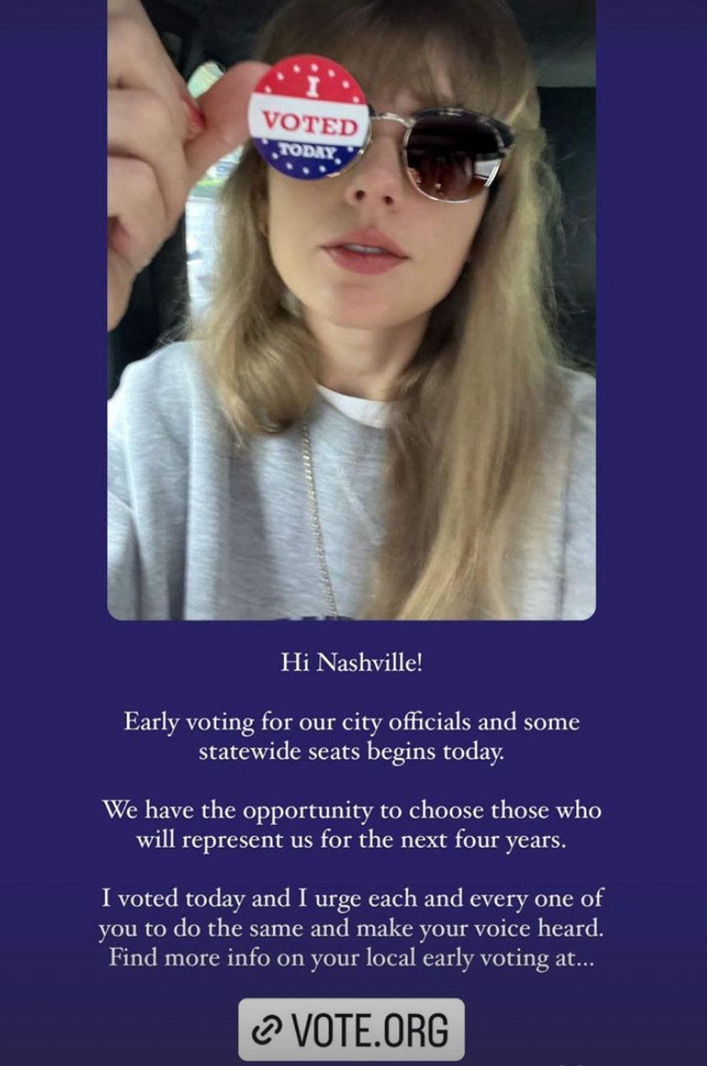 2023년 전국 유권자 등록일에 그녀의 인스타그램 스토리 중 하나가 157,041명의 사용자를 Vote.org로 유도했고, 그 결과 35,000건의 신규 등록이 이루어졌습니다. CEO 안드레아 헤일리는 "저희 사이트는 30분마다 평균 13,000명의 사용자를 확보했는데, 이는 테일러 스위프트가 자랑스러워할 만한 수치입니다." 라고 말했습니다.